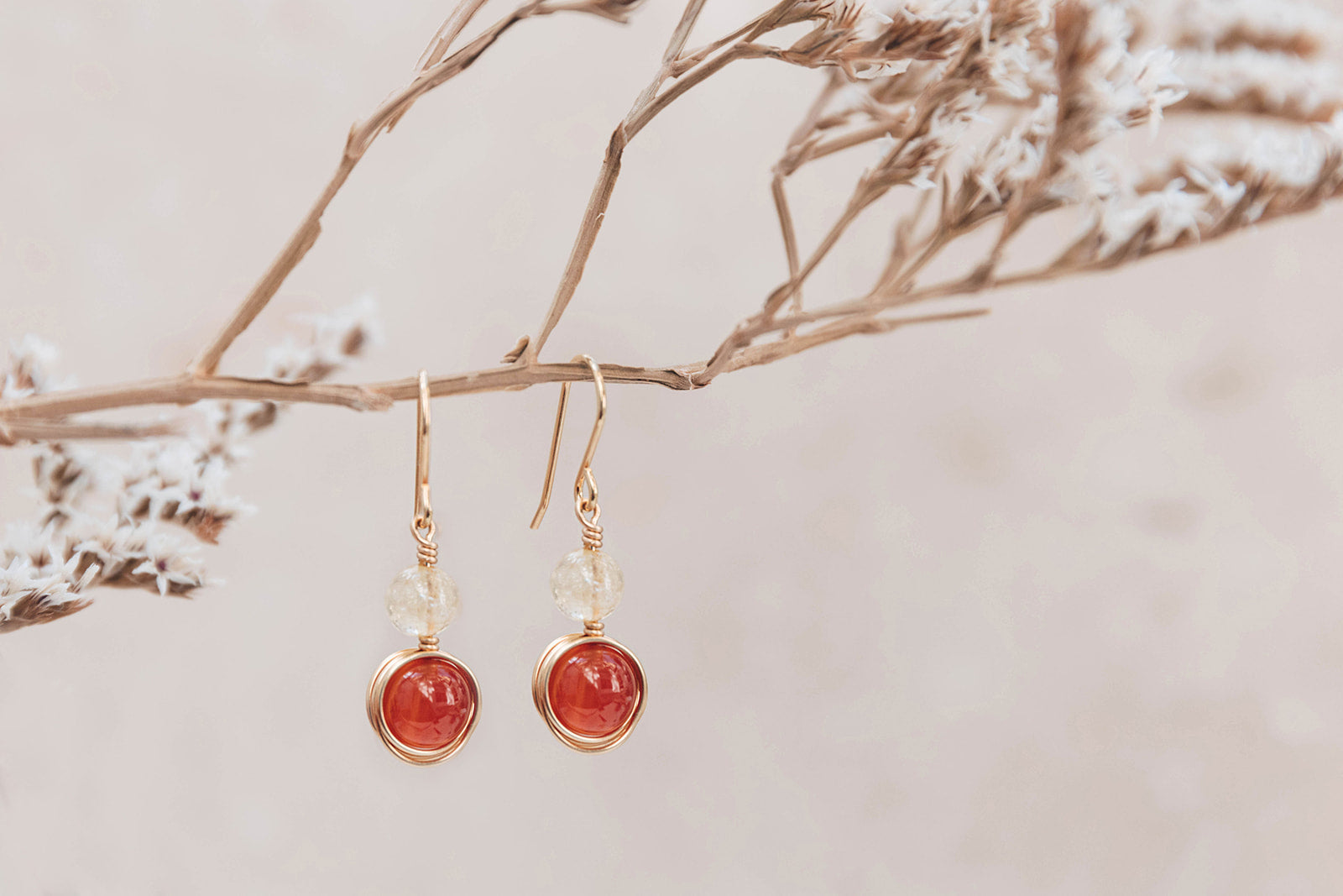 The rich, burnt orange tone of Carnelian is reminiscent of falling leaves and cozy firesides combined with the sunny warmth of Citrine. These charms hang delicately catching the light with every movement, adding a touch of warmth and vibrancy. These earrings embody the essence of the season, perfect for layering or adding a pop of colour to cooler days.